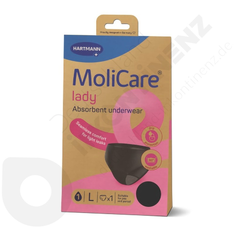 Molicare Lady Waschbar Absorbierende Unterwäsche 1 Tropfen ist eine saugfähige, waschbare Unterwäsche, die mit anatomischen Einlagen der Marke Hartmann verwendet wird.