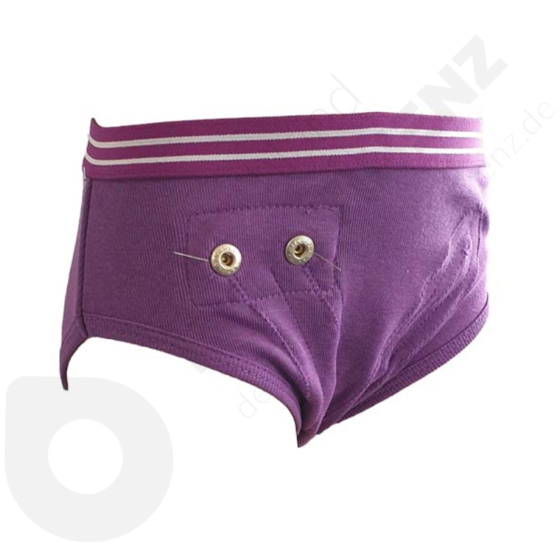 Die Pjama Höschen ähneln der normalen Unterbekleidung, enthalten aber Feuchtigkeitssensoren. Sie sind auch mit Druckknopfanschlüssen versehen, um die Pjama Kabellose Bettnässeralarmsystem.