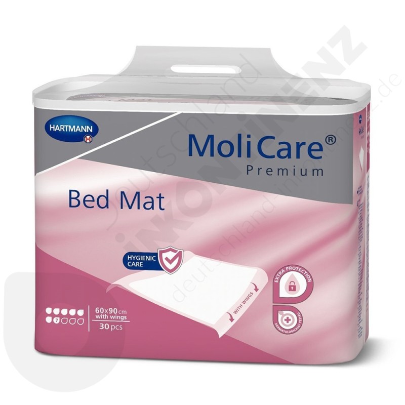 Die Schutzeinlage Molicare Bed Mat ist eine Einweg-Krankenunterlage der Marke Hartmann, die verwendet wird, um Betten, Couchs und Stühle zu schützen.
