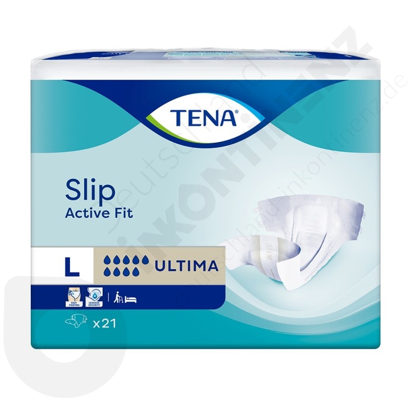 Tena Slip Active Fit Ultima ist eine komplette Windel mit einem Kunststoff-Außenmaterial von Tena.