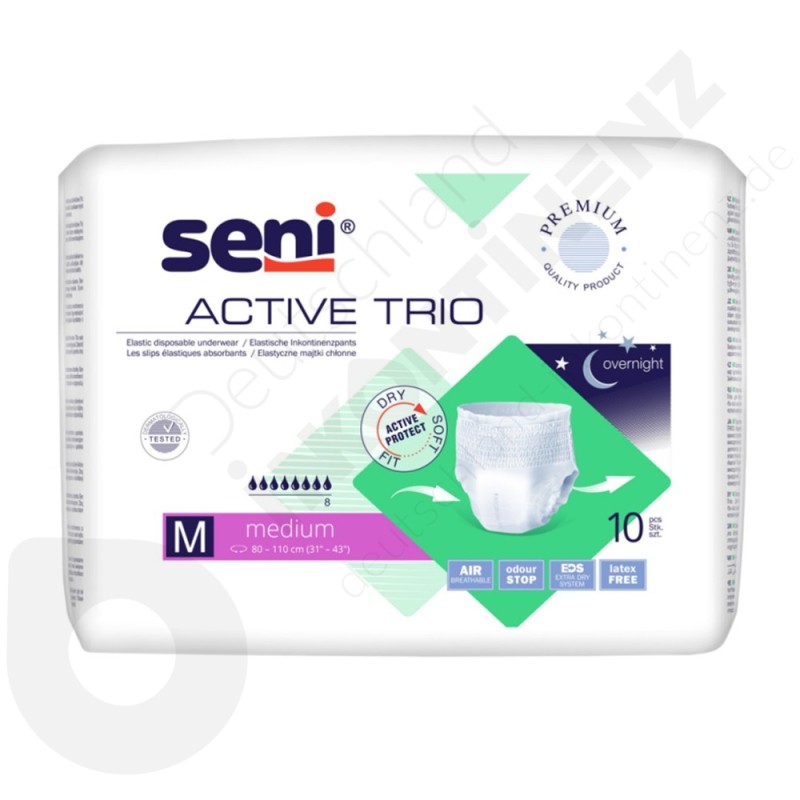 Seni Active Trio ist ein absorbierender Slip aus Vliesstoff der Marke Seni.