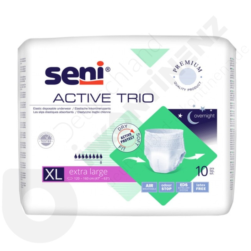 Seni Active Trio ist ein absorbierender Slip aus Vliesstoff der Marke Seni.