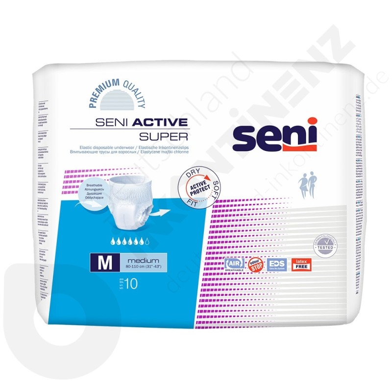 Seni Active Super ist ein absorbierender Slip aus Vliesstoff der Marke Seni.
