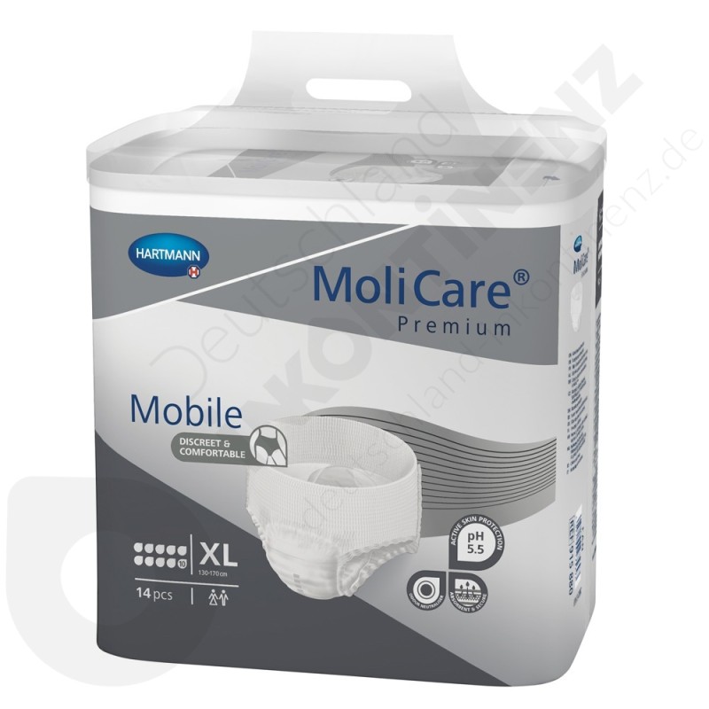 Molicare Mobile 10 Tropfen Größen XL ist ein absorbierender Slip aus Vliesstoff der Marke Hartmann.