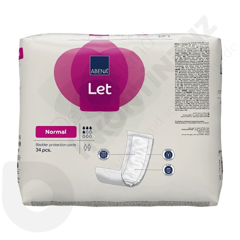 Die Schutzeinlage Abena Let Normal ist eine rechteckige durchlässige Windeleinlage der Marke iD, die als zusätzliches Aufnahmehilfsmittel verwendet wird; das heißt, dass sie nicht alleine verwendet werden kann. Sie muss zur Erhöhung der Saugfähigkeit in einen anderen Schutz eingelegt werden.