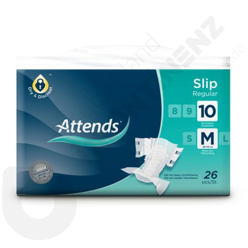 I tested the Attends Slip Regular 10 - MEDIUM - 26 pieces for the first time and I must say, for a diaper with a fabric-like surface, it is a top diaper! Compared to other diapers with the same surface, I noticed that it does not get wet on the outside and you do not smell the urine! And in summer it lets more air to the skin than a plastic diaper and absorbs the liquid excellently and distributes it very well! I will probably order these more often! (Translated review)