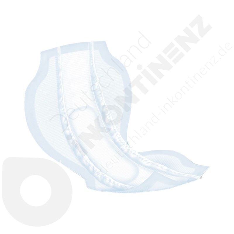 - Fold out the protection pad horizontally around the front, whilst creating a groove. Make sure the edges are flat. The protection must be fitted right around the groin, with the inlay film turned towards the outside.