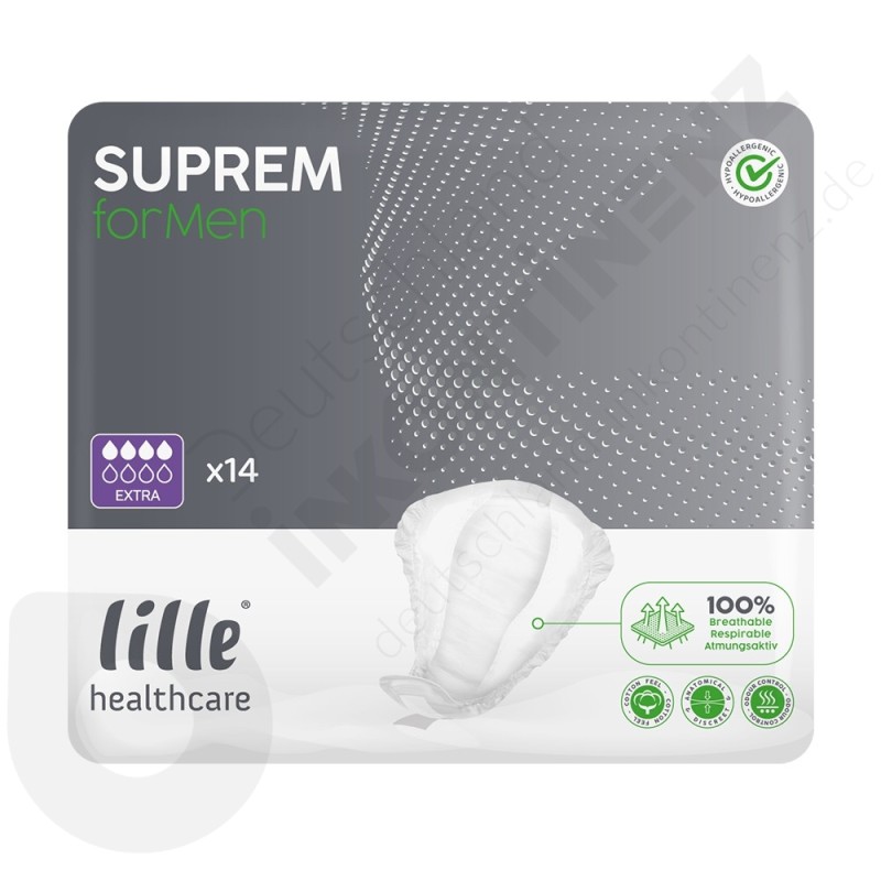 Lille Suprem For Men Extra is a non-woven man incontinence pad brought to you by Lille.