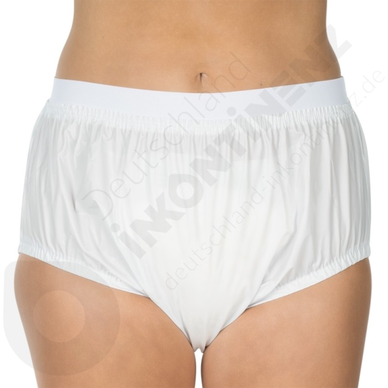 - Wear the plastic brief over your usual protection (incontinence pants, all-in-one brief, insert pad, etc.) ;