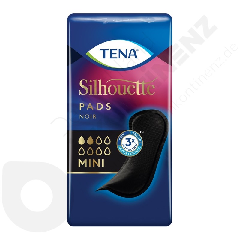 Tena Silhouette Pads Noir Mini is a black absorbent pads brought to you by Tena.